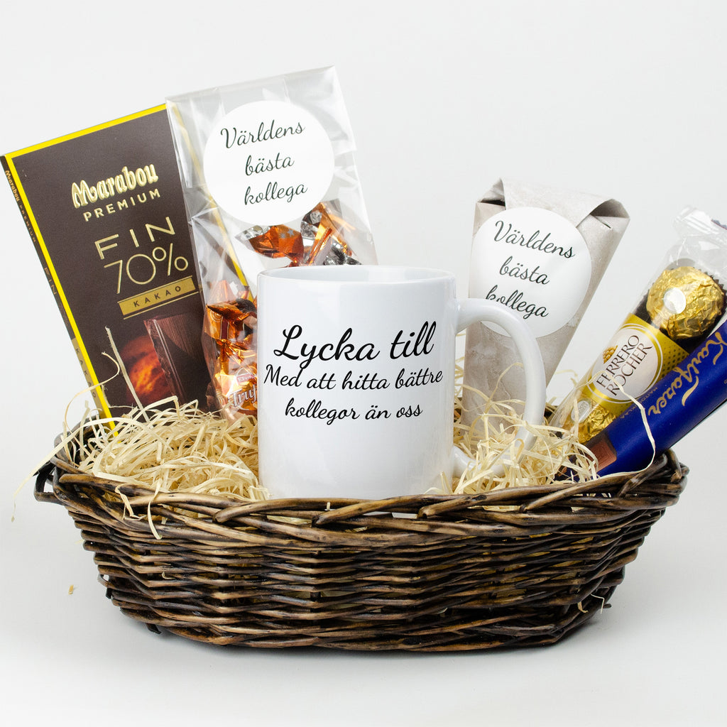 Present till kollega | Lycka till med att hitta bättre kollegor än oss | Presentkorg |